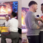 “I know that all of you want us to get engaged…” Priyanka tells the room, before adding, “we are!” and dropping to one knee to propose, prompting a visibly stunned reaction from Skaruz, while their family and friends erupt into hollers of joy.